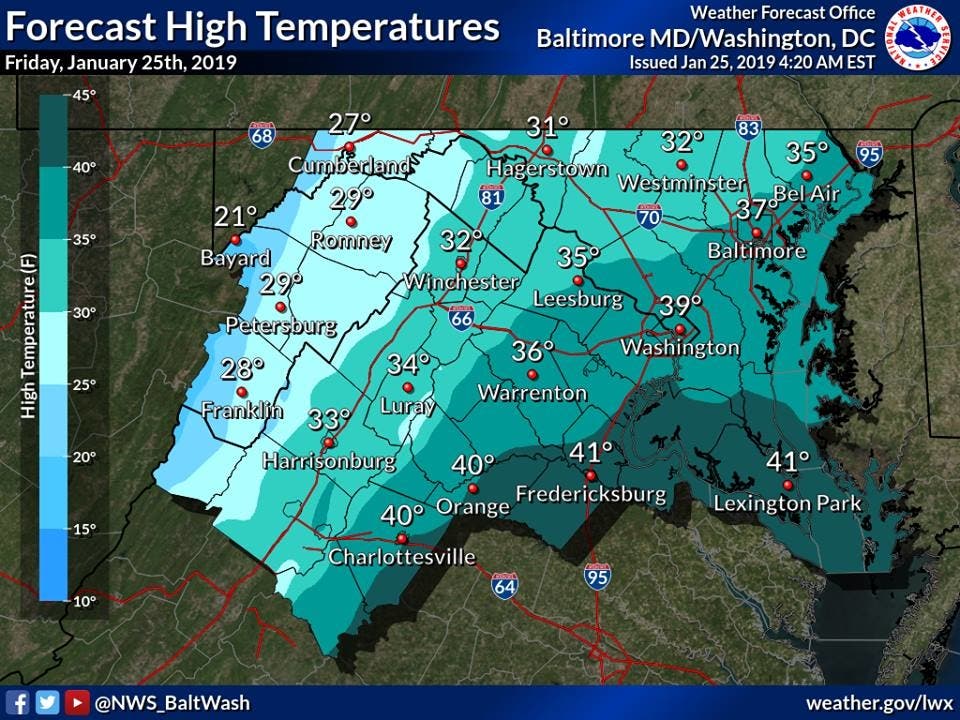 WASHINGTON, DC — After a mild Thursday, normal winter weather has returned to northern Virginia for the weekend, while early forecasts say a mass of polar air will hit the Mid-Atlantic region by the middle of next week. The National Weather Service says that gusty winds Friday through Sunday will bring wind chills that make it feel like the temperature is in the teens in the DC metro.