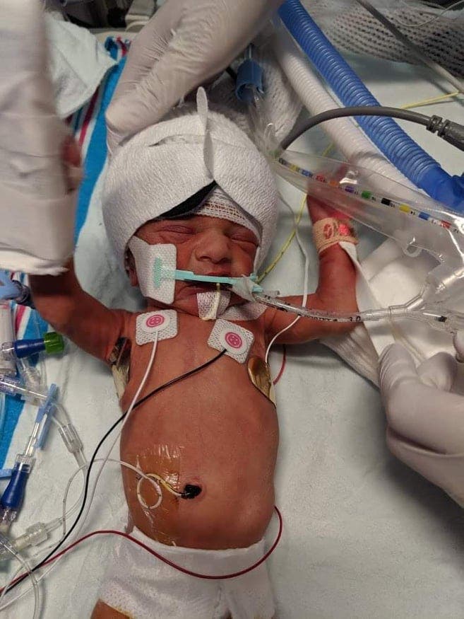 When James was delivered, he wasn't crying. Tom Shahryary wasn't worried at first, until James' brother Lucas came out screaming. James was immediately intubated and taken away, while the parents got to see Lucas.