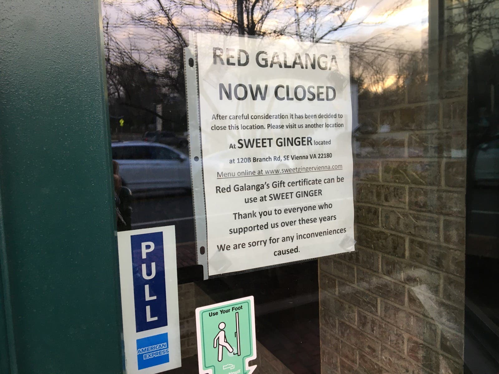 VIENNA, VA — Red Galanga, a restaurant specializing in modern Asian cuisine, has closed on Church Street in Vienna.