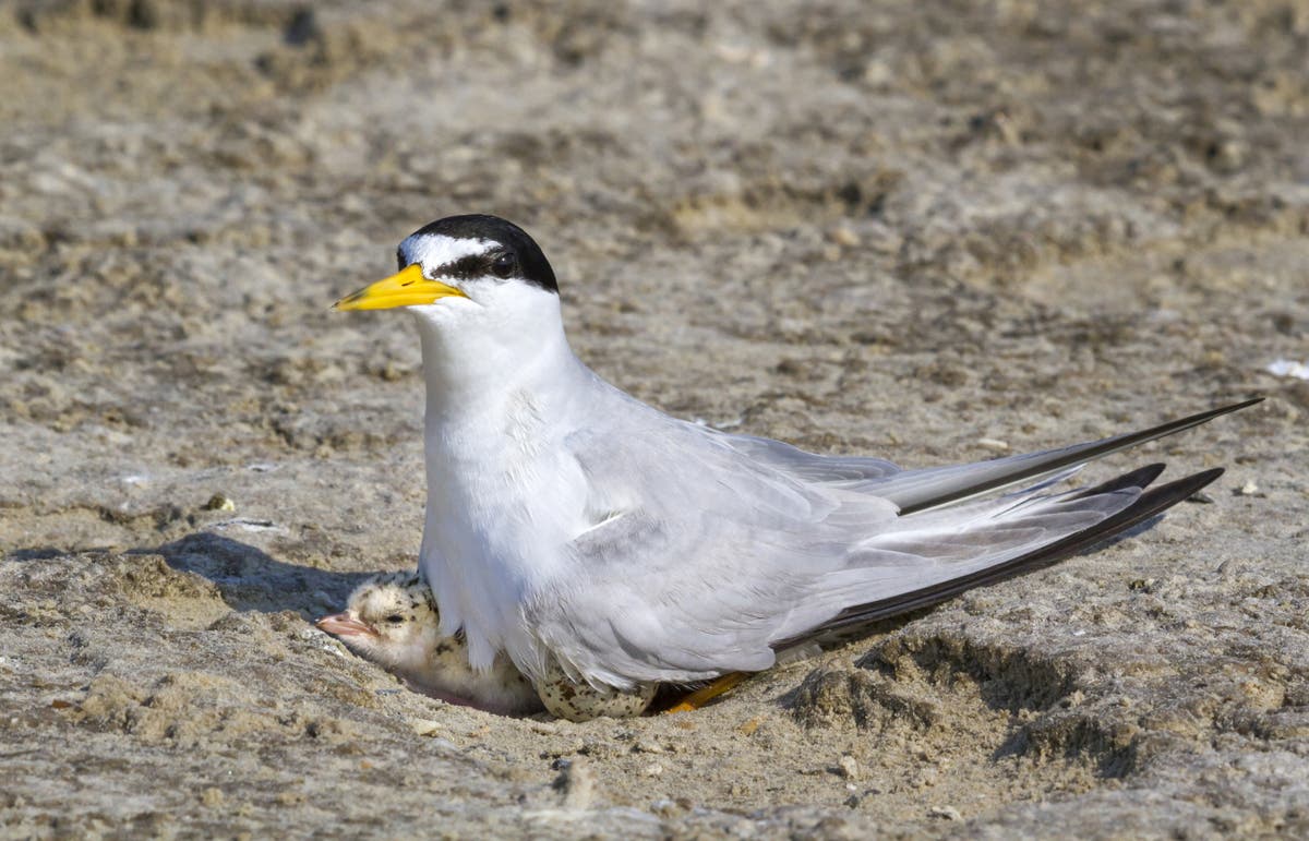Least terns, as the species’ name suggests, are the smallest of the tern family of seabirds and are about half the size of a cardinal. Their very existence is precarious, and they’re federally protected under the Migratory Bird Treaty Act. To survive predatory threats, their evolutionary strategy is to nest in dense colonies, spacing their sand nests a foot or so apart. That's also what led them to Sand Island.
