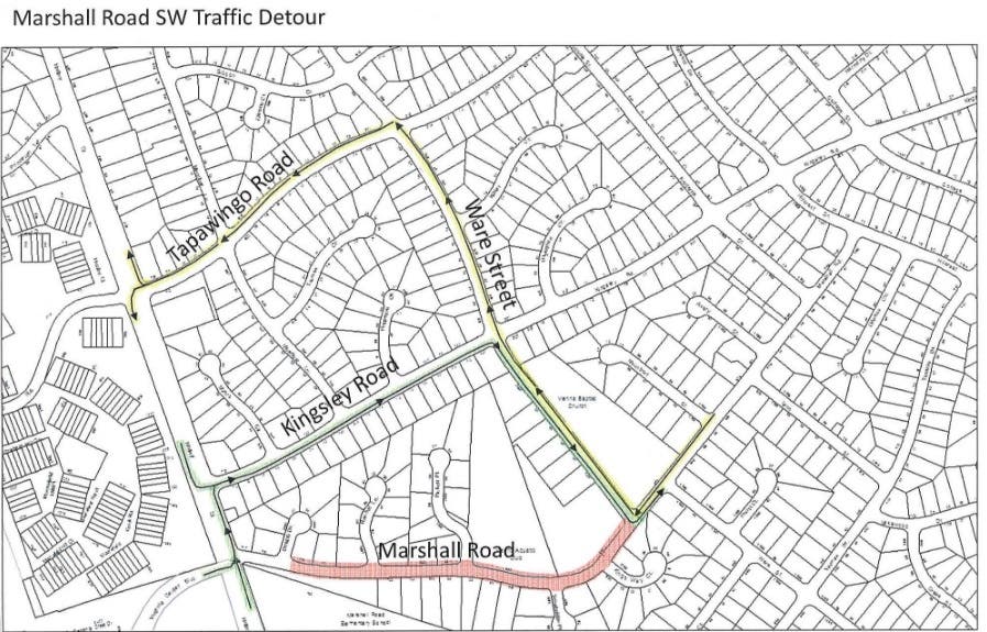 Drivers and pedestrians will have detours around Marshall Road during construction hours.