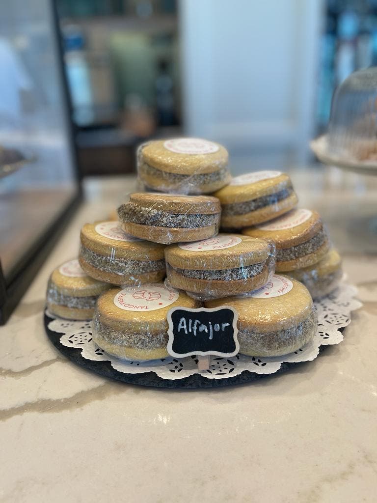 Tango Pastry Café's menu offers sweet and savory options, such as the traditional Facturas, Alfajores, Cañoncitos with Dulce de Leche, Empanadas, Tea Sandwiches and more. Coffee, smoothies and other drinks are also available.