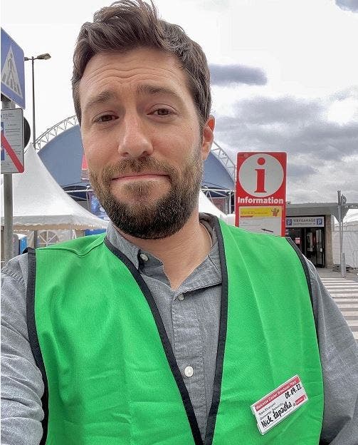 Principal Nicholas Zapadka had nothing planned for spring break and had spent time studying in Cologne, Germany, during college. He decided to travel to Cologne in early April to help Ukrainian refugees who had arrived at a Red Cross refugee camp in Germany.