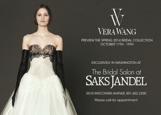 Don't miss our Vera Wang Trunk Show at The Bridal Salon at Saks Jandel! Call 301-652-2250 for an appointment.