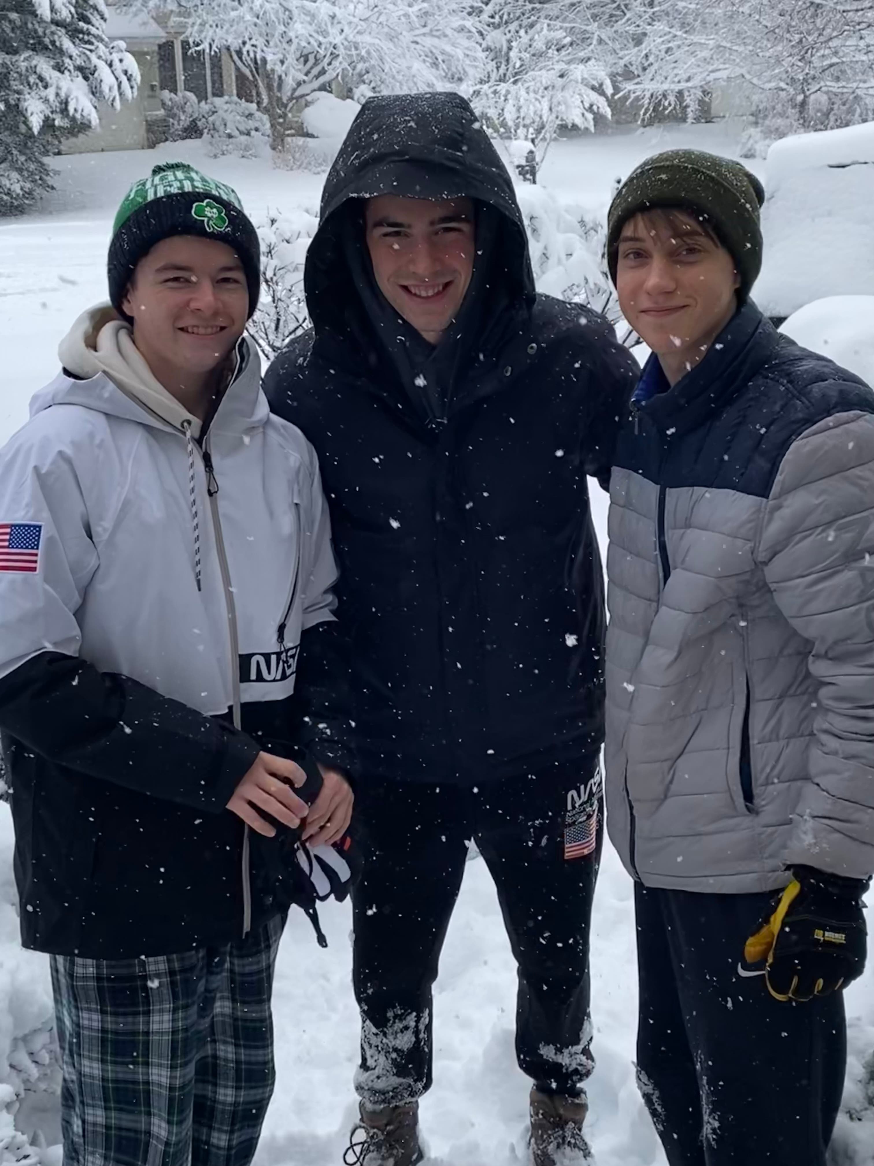 Oakton High School seniors Riley Storck, Ryan Odell and Connor McCullin enjoy the snow day