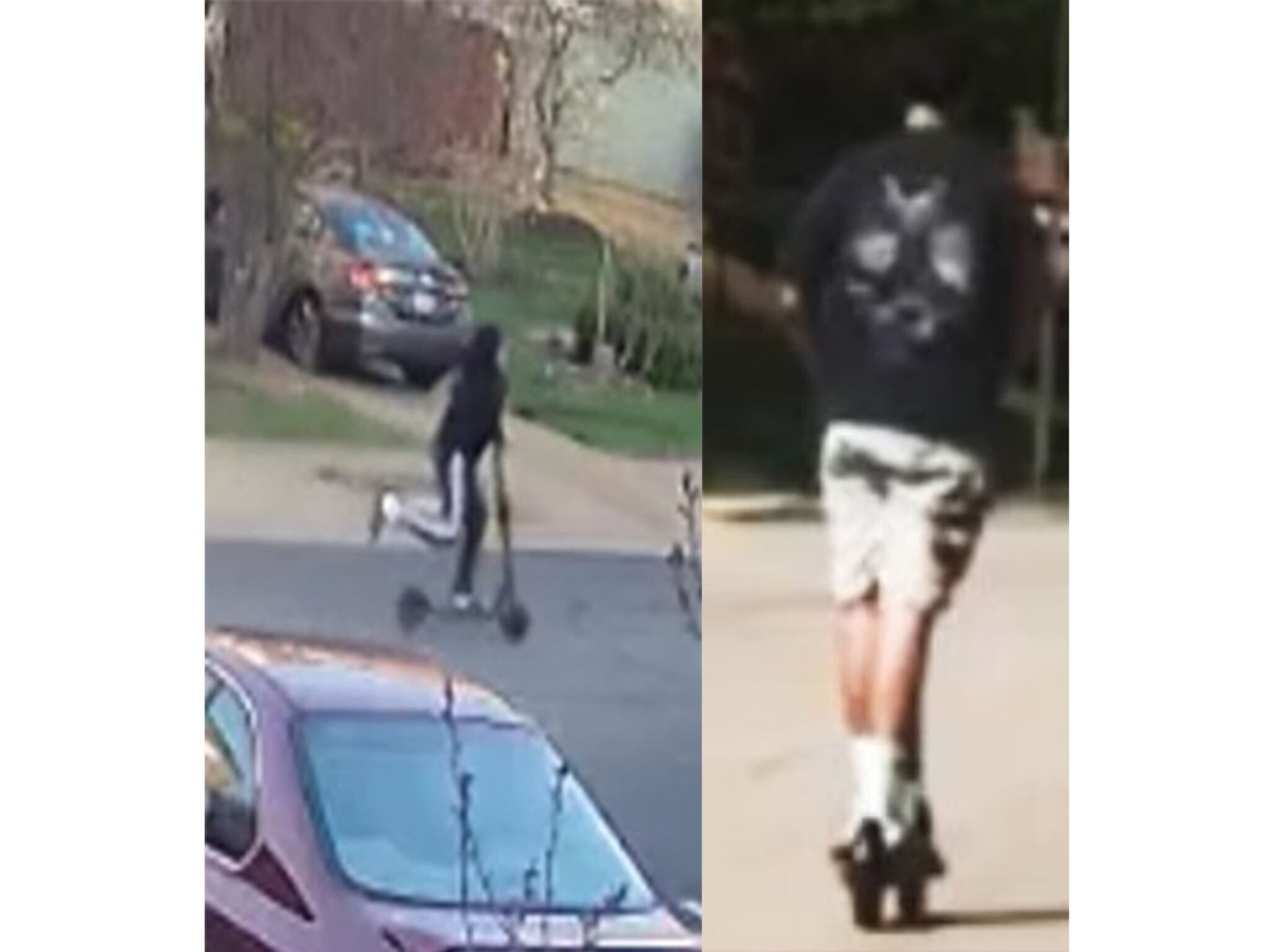 The suspect in that incident was described as a Hispanic male in his late teens to early 20s, 5’8” tall, with brown, wavy hair, and driving a black stand-up electric scooter.