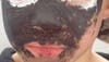 Justine said: "Volunteer children (nine-year-olds) from a children's nonprofit were fundraising with this type of painting. This poor boy was clawing at his face trying to get it off. He had to leave the fair because this was not coming off with anything other than a shower. It was Palmer liquid paints, approximately eight or nine years old since they purchased it. The volunteer painter kids were using little brushes, water in rusty soup cans, and not a baby wipe, hand sanitizer, or disinfectant in sight. And, turns out the brushes hadn't been washed from the day before, she was going to wash them (because we were there pushing the issue.)"