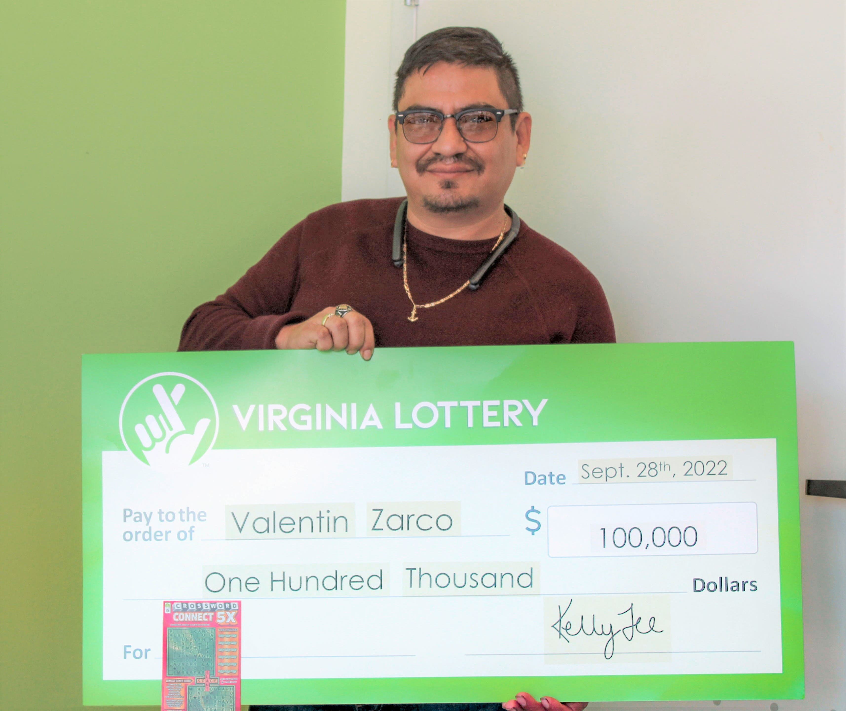 A mechanic from Woodbridge won $100,000 when he received the top prize from a Virginia Lottery scratch-off game.