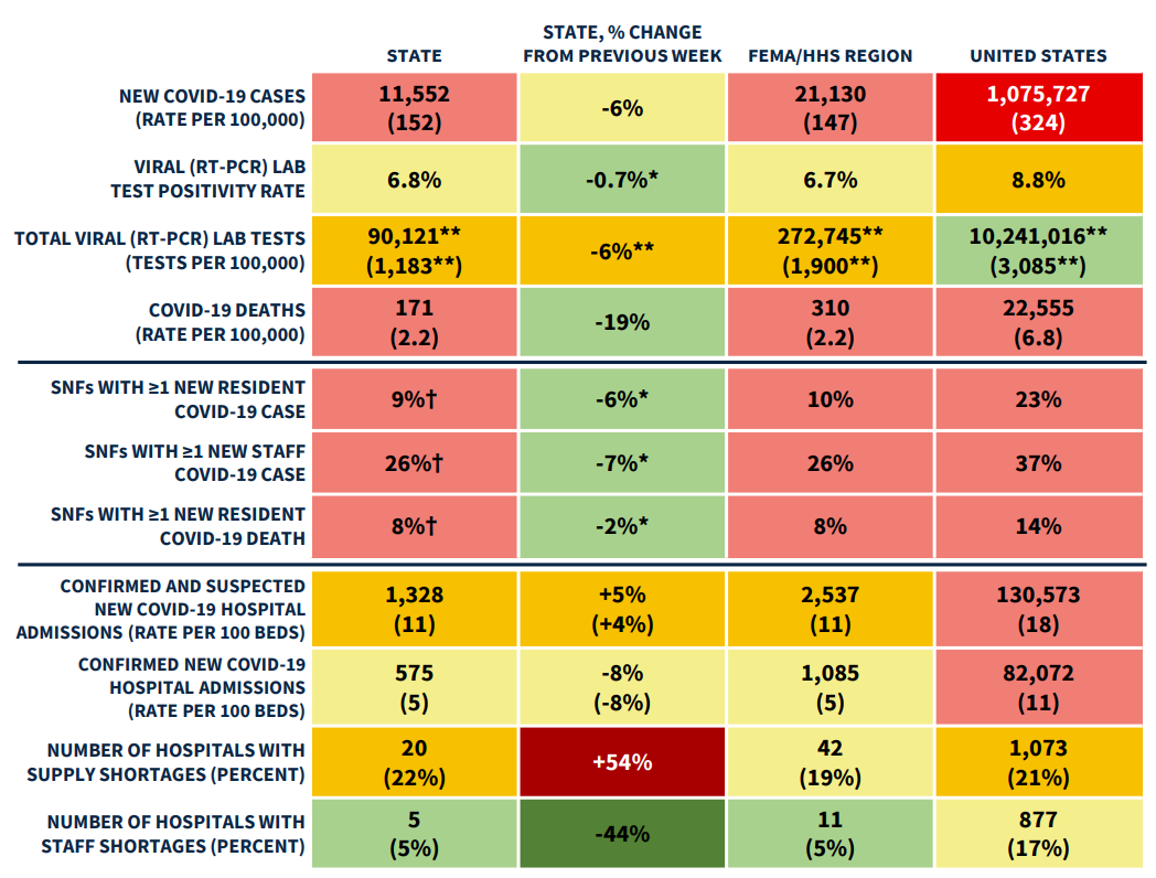The latest data, for the week ending Jan. 31, shows Washington made steady progress in lowering case counts and death rates, but more hospitals reported supply shortages and the number of tests performed continued to decline.