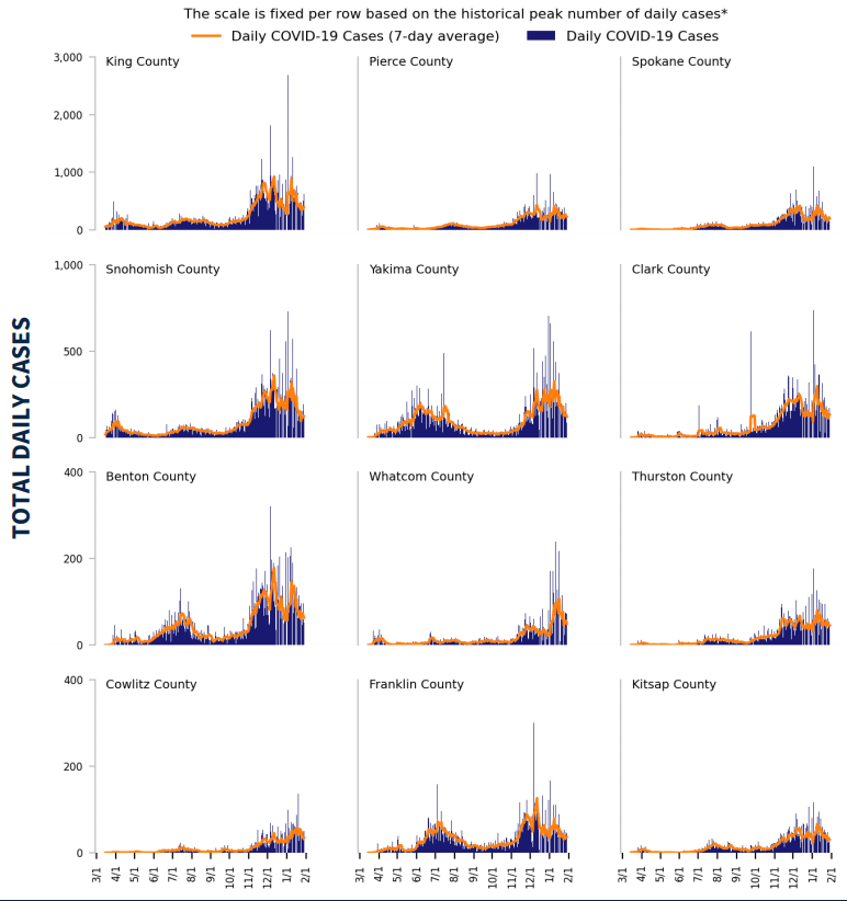 Washington's federal coronavirus profile shows most trends were heading in the right direction through the end of January.