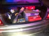 Police said an officer pulled over a car with wires hanging from the trunk and found a stolen catalytic converter inside.