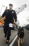 Runners don Boston apparel to show support for victims of last week's terrorist attack.
