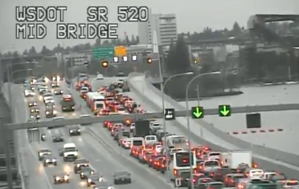 I-90 might not be a good pick either. The westbound lanes were backed up from Mt. Baker to the east side of Mercer Island as of 8:50 a.m. Tuesday.