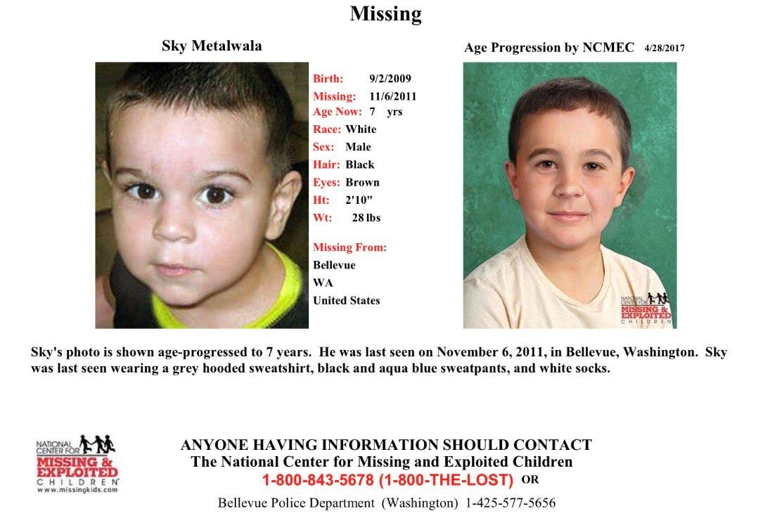 BELLEVUE, WA - Bellevue police on Saturday released new age-progressed photos of Sky Metalwala, who disappeared from Bellevue more than five years ago. Metalwala vanished when he was two years old in November 2011. Bellevue police are asking anyone with information about the case to contact the tip line at 425-452-7658.