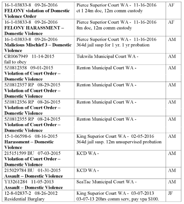 Court documents reference Aric Knapik's 12 previous domestic violence convictions.