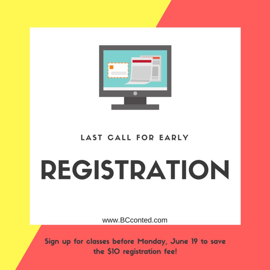 Early registration for Summer Quarter 2017 at Bellevue College Continuing Education ends Monday, June 19! Want to save some money when you sign up? Enroll before Monday and we'll waive the $10 registration fee.