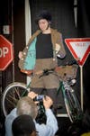 Fremont bike-clothing store stops traffic at the Seattle Bicycle Expo.