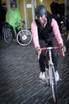 Although she produced the runway-style show, with Willie Weir announcing descriptions of the outfits while music pumped through the air, Delfs says her goals go beyond either fashion or safety to the idea of just using your bike to get around. To her, fashionable bike clothing is not for the long recreational rides out to the farmland, but rather for the five- to seven-mile rides in the city.