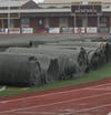 Workers have been taking out the old turf on the football field at Sunset Stadium at Sumner High School the past few weeks.