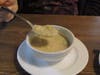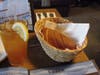 We burst in from the rain at the stroke of noon and were seated right away. We were no sooner settled than a basket of fresh-baked bread arrived at our table. Still hot from the oven, the aroma was heavenly. It melted the butter in seconds, and the crust had just the right amount of crunch. Mmm good!