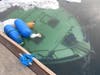 Two 50-foot boats were destroyed in the fire at the Edmonds Marina P Dock. One boat, the Great Scape, was towed away. The other, Sea for Two, sank. It was later lifted out of the water by floatation devices.