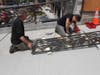 Workers today installed a new railing on the Maple Street side of the plaza. The decorative touch was designed by Seattle artists Anna Sher and Rodman Gilder Miller, the latter the great-grandson of Louis Comfort Tiffany, the famous glass artist.