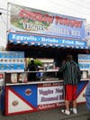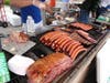 His booth's sign included the words "Big Weiners," helping to draw a lengthy queue to Michaels' booth for an array of freshly grilled sausages and burgers.Â
