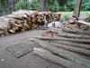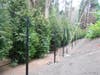 Because of a serious root fungus called Phytophthora lateralis, 35 Port Orford cedar trees have been replaced by 35 new trees between 10 and 14 feet high. A fence is being constructed next to the trees.