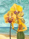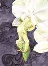 She makes that flower the centerpiece of her newest works. For example, this spring she was attracted to orchids. Thus, her newest works this spring, Emergence and Emergence II, feature orchids as a major element.