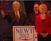 The crowd quickly chanted “Newt, Newt, Newt,” while one rally member near the stage stood up and yelled at the protestor to show himself in the lower level and repeat what he said.