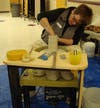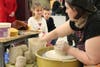 As Enumclaw Mayor Liz Reynolds -- who spearheaded this local Empty Bowls event -- stayed busy at the potter's wheel, and the Bundys scoured for a set of bowls they might use for communion bowls, others leisurely perused the array of bowls supplied by everyone from students at Green River Community College, Arts Alive! to the Enumclaw Crystal Quilters Club to Enumclaw Middle School and High School students (full list of bowl contributors at the end).