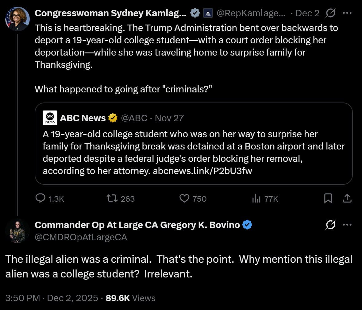 López Belloza, a college freshman, was traveling home to surprise her family during Thanksgiving break when her life was abruptly upended. After clearing TSA, she was apprehended by immigration officials at the airport gate. The following day, a federal judge issued “an emergency order prohibiting the government from moving her out of Massachusetts or the United States”. Instead of complying, the Trump administration deported her the very next day. In this instance, it is fair to ask: who was actually behaving criminally?