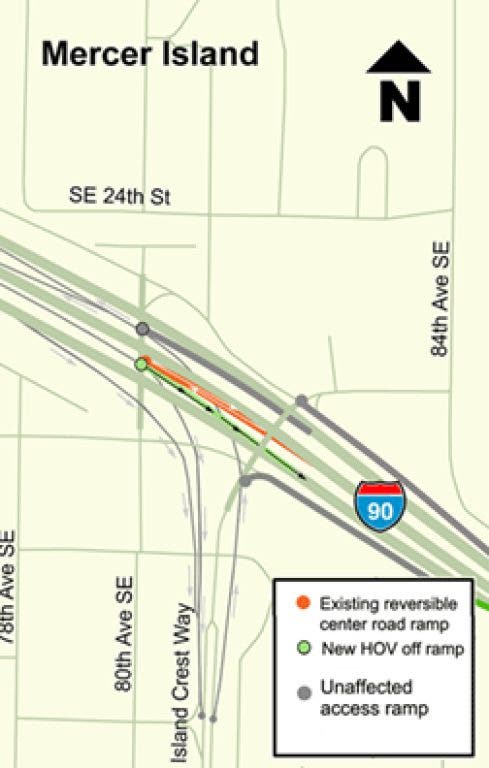 On Monday, Jan. 23, the express lanes access ramp at 80thย Avenue Southeast in Mercer Island will close for up to four weeks and will reopen to new eastbound HOV lanes on the main part of the highway, the state reported.