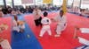 Red and blue colored mats lie on the floor of the large dojo. The club started with just eight students but has since expanded to 150, half of which are military families, Rocky said. While having Joint Base Lewis-McChord in their backyard has helped fill the dojo, many families leave because of relocation.