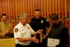 PFC Jose Delgado was speechless after being recognized by Lakewood Police and Fire officials including Mayor Richardson for his heroic actions on July 24.
