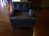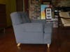I love the fabric, a nubby deep charcoal gray, and I have visions of it in the corner of my bedroom, making a little reading nook with my imaginary but very cool mid-century floor lamp and side table. Kind of like the photo from Braxton and Yancey blog.