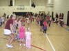 The 26 members of the Varsity cheer squad taught the girls kicks, jumps and more than 15 different cheers.