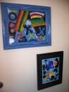There is a multimedia artwork hanging in Phil Flash’s vestibule called “Dot Com Culture.” It contains a CD, DVD and a computer motherboard and painted representations of other internal parts of a computer, overlaid with a network that is connected to the internal parts by colorful alligator clips. “I made a series of 9 of these, representing the connections of today’s society to our dot com culture,” said Flash. “I’m not your average boat and barn painter…I like to be a little more creative than that.”