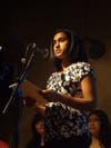 Spotlights illuminated the stage as the poets transitioned from one tale to another, with the photo that served as their muse projected on a screen behind them. The images were arranged chronologically, starting with a capture of two Snoqualmie tribe girls petting a fawn back in the 1880s and ending with a snapshot of the Sammamish slough races at Marymoor in 1956. Multiple poems accompanied each photo, delivered by different authors and offering varied perspectives on the town's day-to-day life.