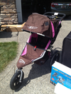 In Chocolate & Pink features a 12" front wheel that swivels can be locked forward for maximum stability for running or jogging and straight-ahead walking. Take the tilt out of your life with the BOB Revolution Stroller. The Revolution's revolutionary pivoting front wheel swivels for quick, easy, all-wheels-on-the-ground turning. It's as easy as steering your bike. Three inches of suspension and on/off-road tires give the child a smooth, nap-inducing ride. The BOB Revolution Stroller in Chocolate & Pink, is equipped with two step folding made for compact storage and easy travel. This jogging stroller is designed with a padded reclining seat is made for your child's comfort. Rear wheel foot-activated parking brake is easy to operate and locks out both rear wheels. Tough, welded frame and durable fabric will ensure that this BOB Revolution Stroller with be with you for years to come.