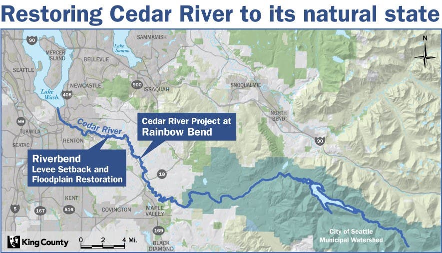 The Riverbend Restoration Project is taking place in unincorporated South King County and builds on the previous Rainbow Bend Restoration Project near the Cedar River Trail.