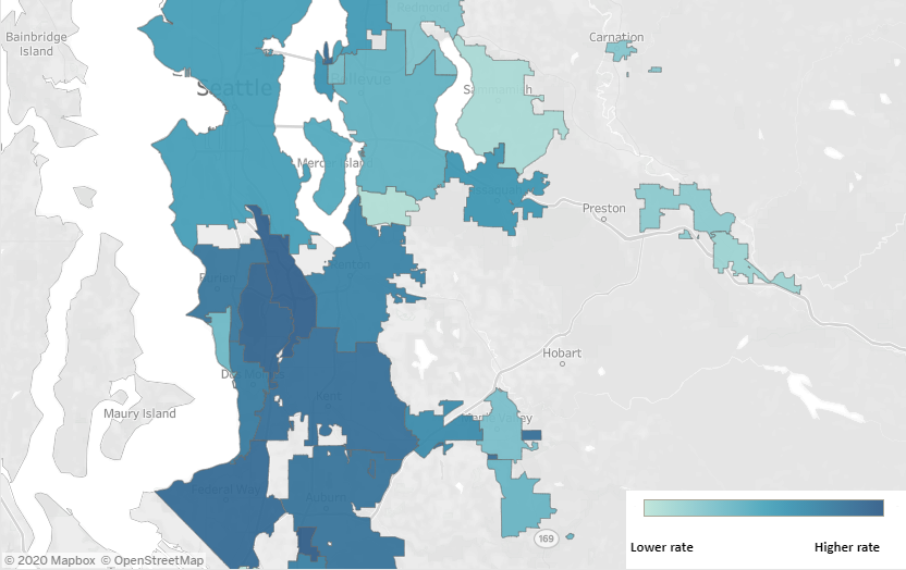 While the number of new cases has recently shown improvement in King County and across much of the state, the rate of transmission remains well above target levels in the state's most populous county. Public health officials have focused particularly on the county's south end, where virus activity has shown to be especially high.