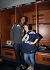 The April 29 reception was followed by a behind-the-scenes tour of the stadium, including a stop in the Seahawks locker room, where each teacher discovered a personalized locker. Inside were a copy of the day's Seattle Times, which featured an ad honoring the teachers, a commemorative 2015 Symetra Heroes in the Classroom booklet and Seahawks items. Seattle Seahawk DeShawn Shead (#35) made a surprise locker room appearance, speaking to the group about the important role teachers and coaches played in his academic and athletic life growing up.