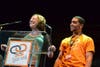 On a night of inspirational messages and talk of peace and hope, the 1984 Nobel Peace Price winner asks the South Sound's youth to lead positive lives and speak out against injustices.