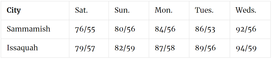 Sammamish-Issaquah Forecast: Warm And Dry Through Labor Day