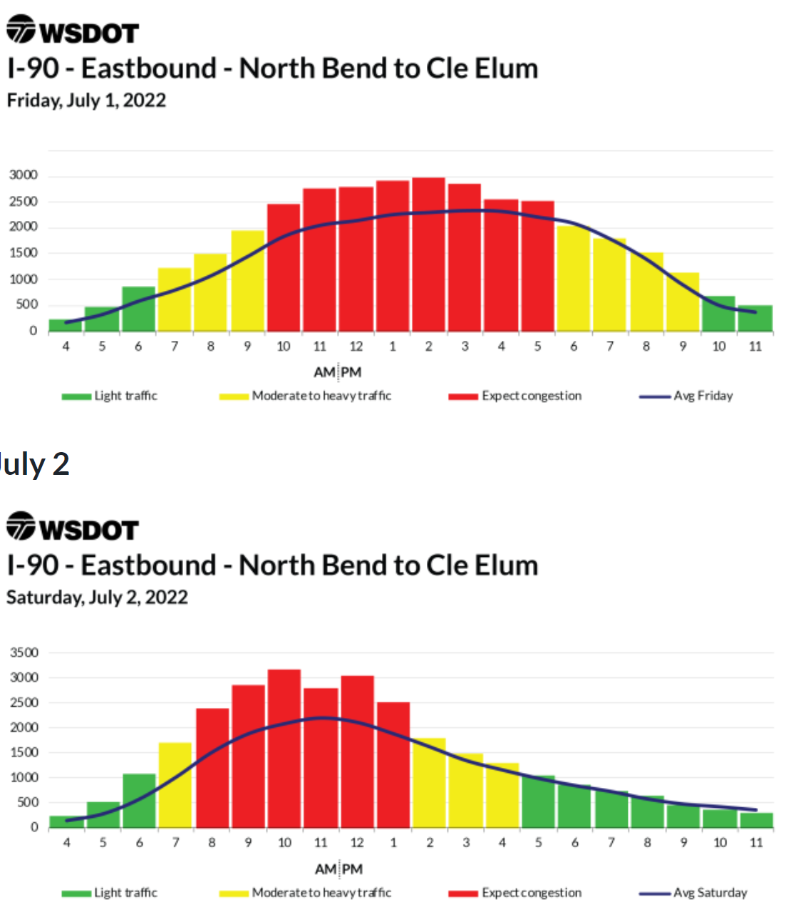 Check out the charts for each day on WSDOT's website: