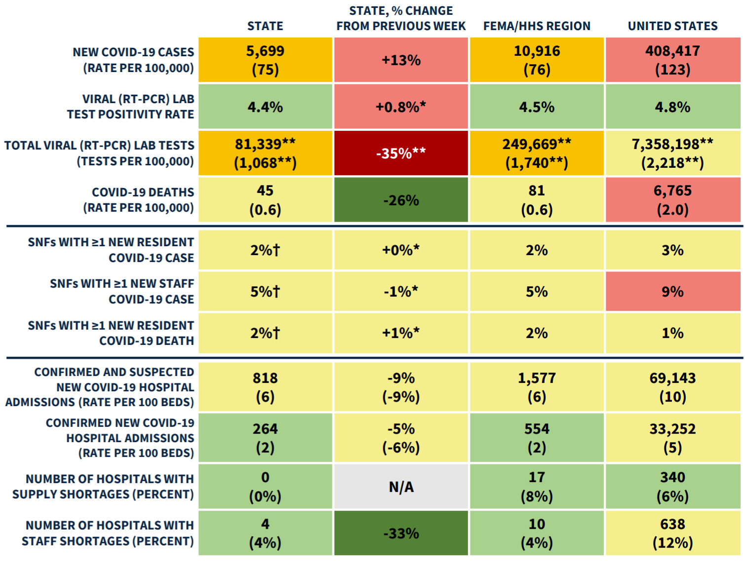 The report found "substantial transmission" as case counts continued upward last week, but death rates and hospitalizations are down.