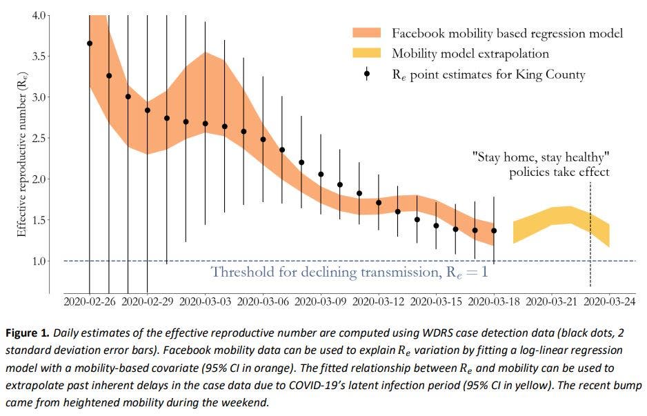 The IDM released the reports Monday, examining the effectiveness of current policies to limit the virus's spread in King County and the Seattle metro. Researchers analyzed information from state and county health departments, and anonymized mobility data from Facebook to compare transmission rates against decreasing public movements.