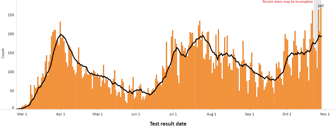 Duchin said the county had averaged between 170 and 190 new cases each over the past week, which is roughly 2.5 times the figures recorded in late September. King County has maintained an upward trajectory for more than five weeks.