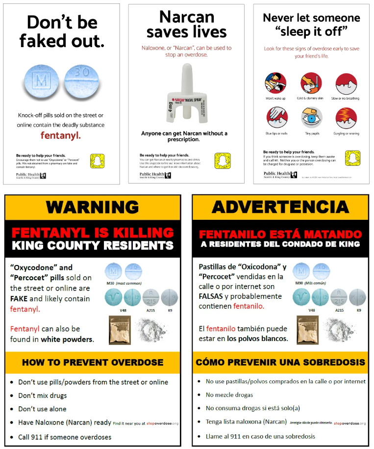 The upcoming panels follow recent overdose deaths in our area among teen boys, all linked to counterfeit opioid pills cut with the powerful synthetic drug fentanyl. King County Public Health is also circulating several new graphics as part of an ongoing awareness campaign.